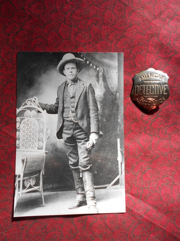 Photo of Laney Thomas Cathey and his badge, paired with Colt SAA Cathey .44 and it’s1870-holster. $9500 for the total package, his 7 ½” nickel .44-40 Colt and holster. From the grandson with affidavit. Paired with the Colt SAA Cathey .44 that can be viewed HEREand its 1870 Holster can be viewed HERE