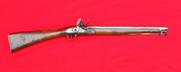 Spanish Colonial period Paget style carbine, miquelet lock, used by the Mexican army during the Texas Revolution, some authorities believe used at the Battle of San Jacinto, about .60 caliber. While the Paget was originally made in England and exported to Mexico, some were made in Belgium. According to the “Tower” marked lock on this […]