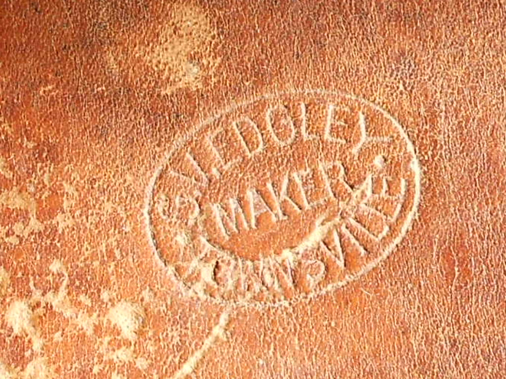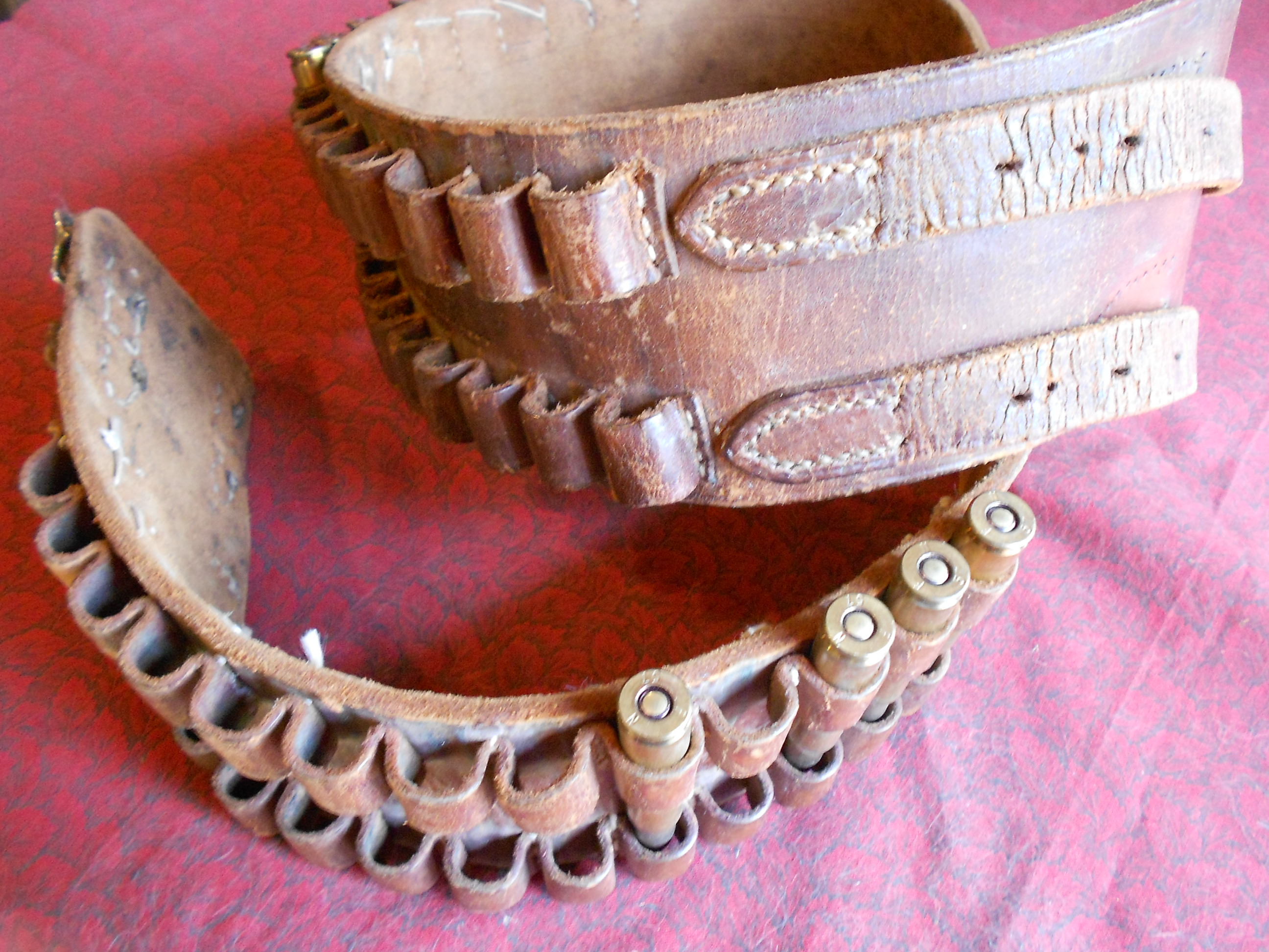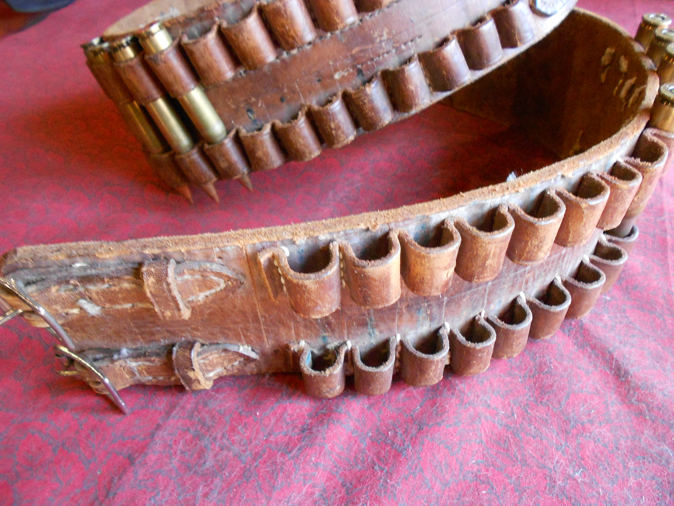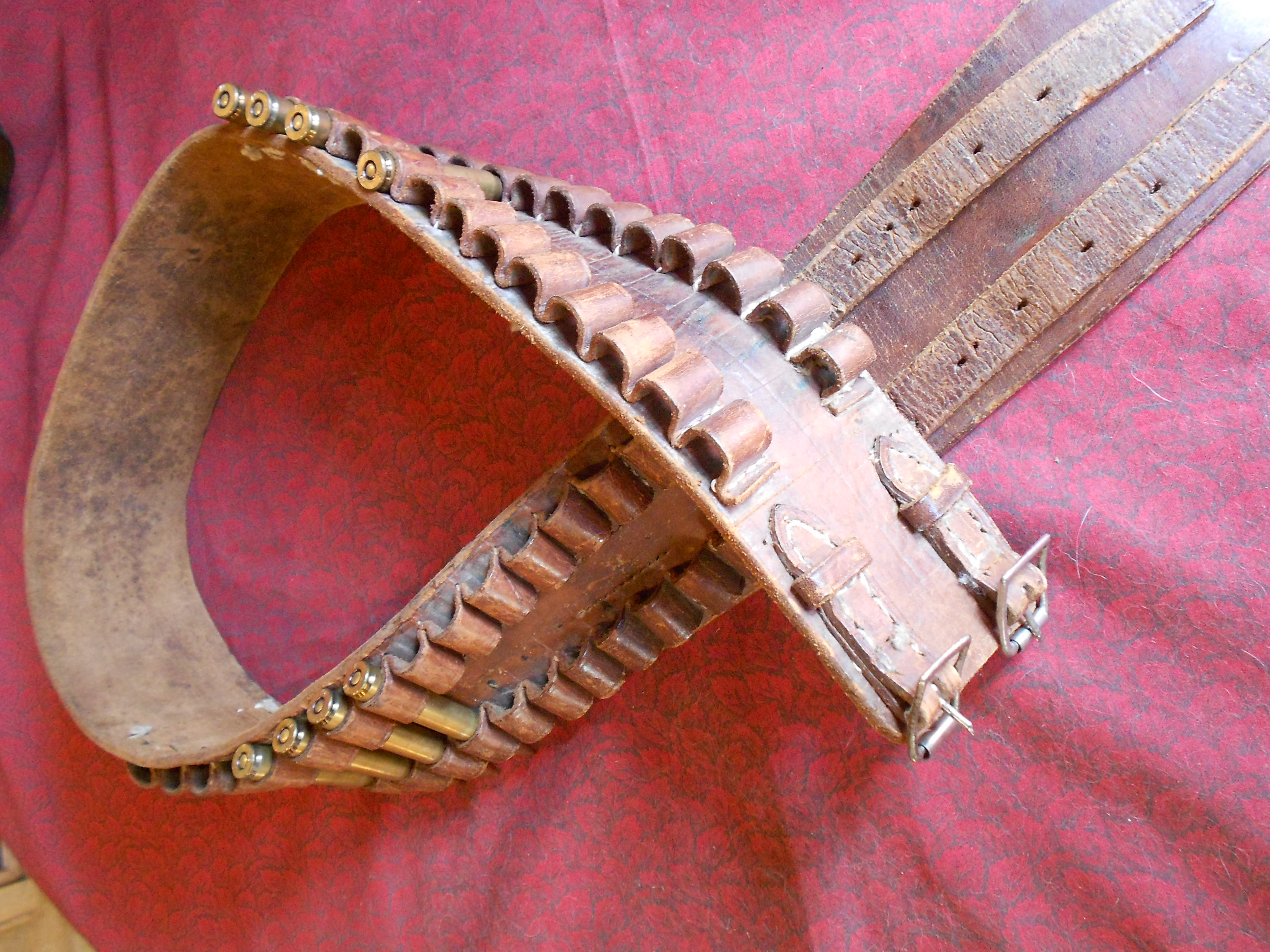 Rifle cartridge belt, double buckle Rifle cartridge belt, double buckle, “G. V. Edgeley, Maker, Brownsville, Texas”, appears to be for about .30-30 size cartridges or perhaps .30-06, circa 1920. $1200