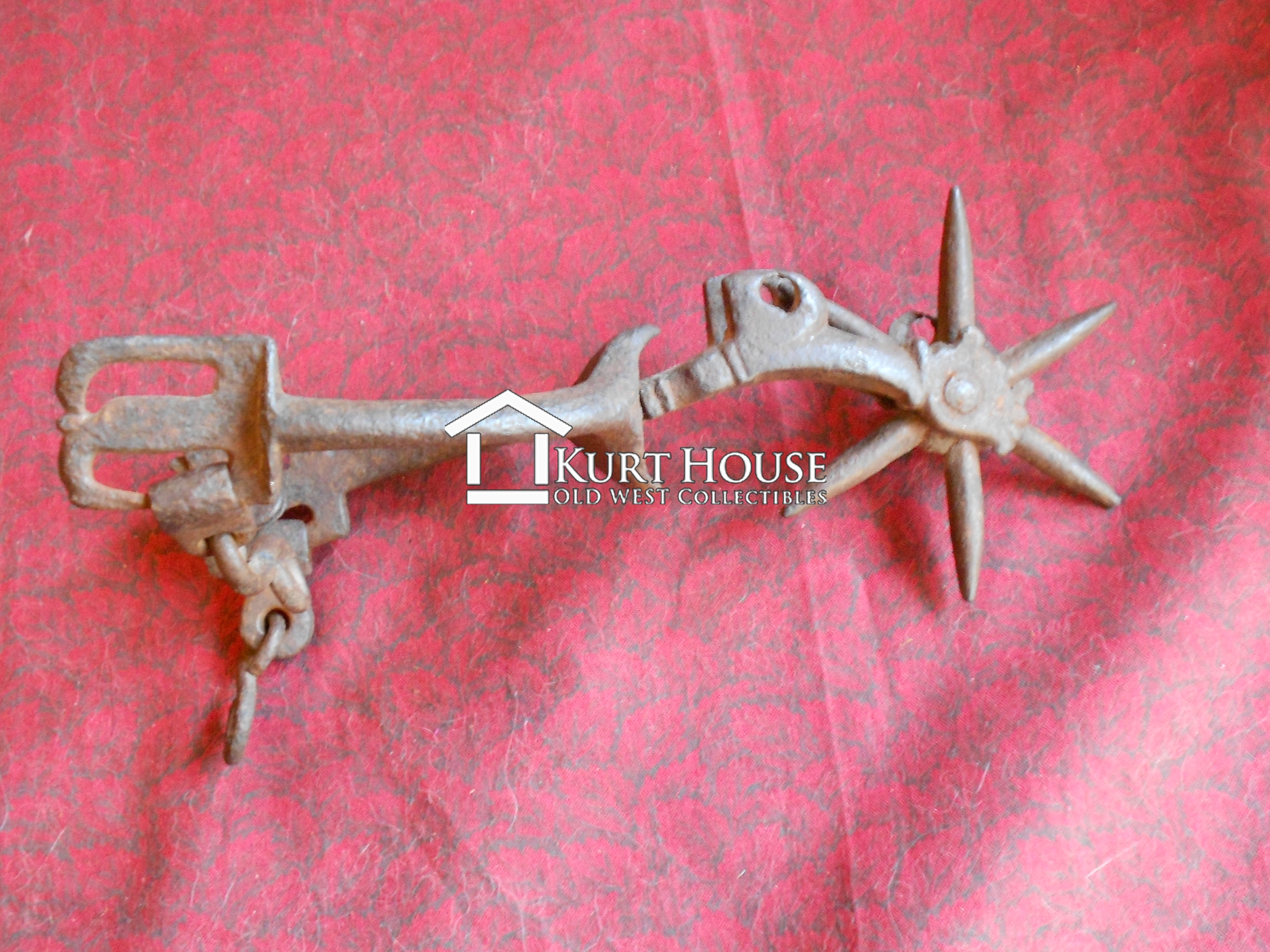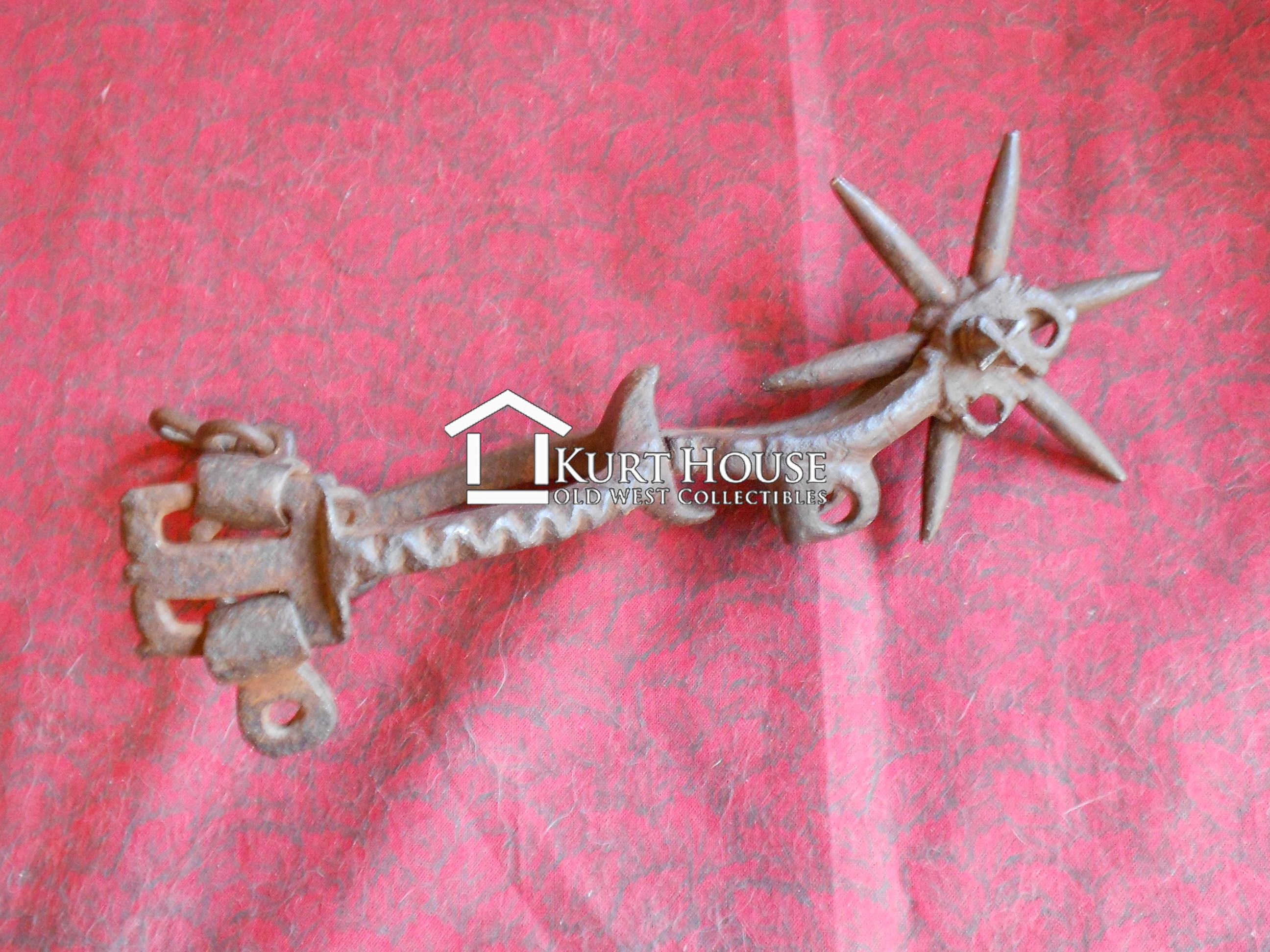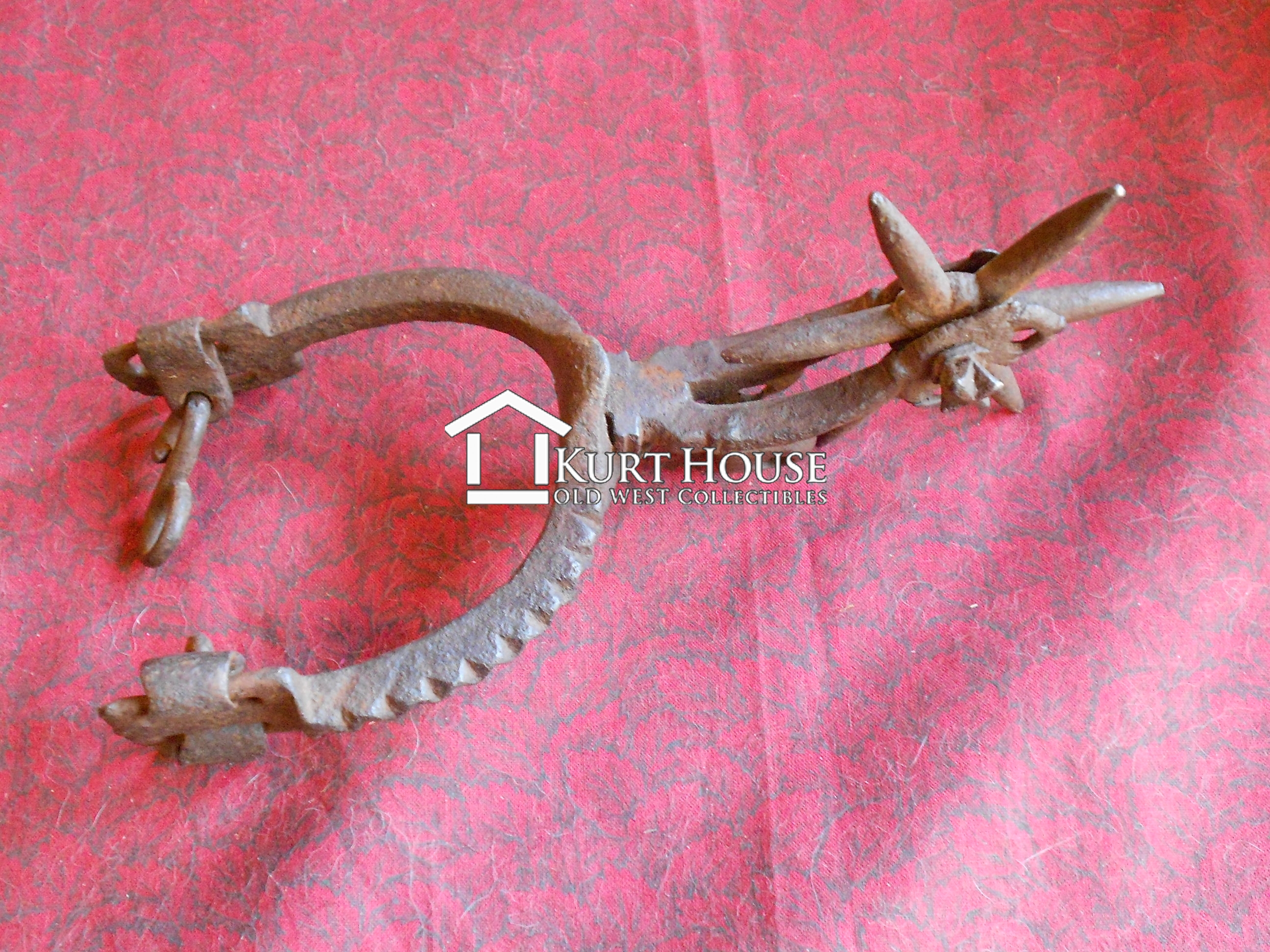 Single Spanish Colonial period spur [Show slideshow] Single Spanish Colonial period spur, brass inlaid, traditional multi-point rowel of the 1850-1870 period probably. $795